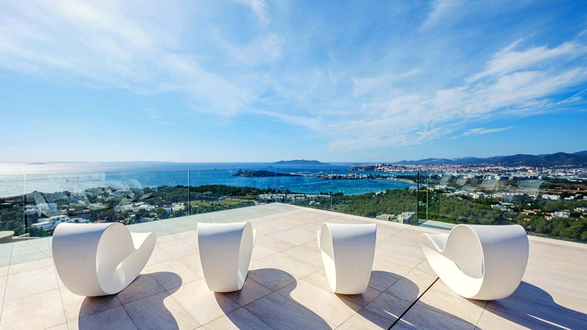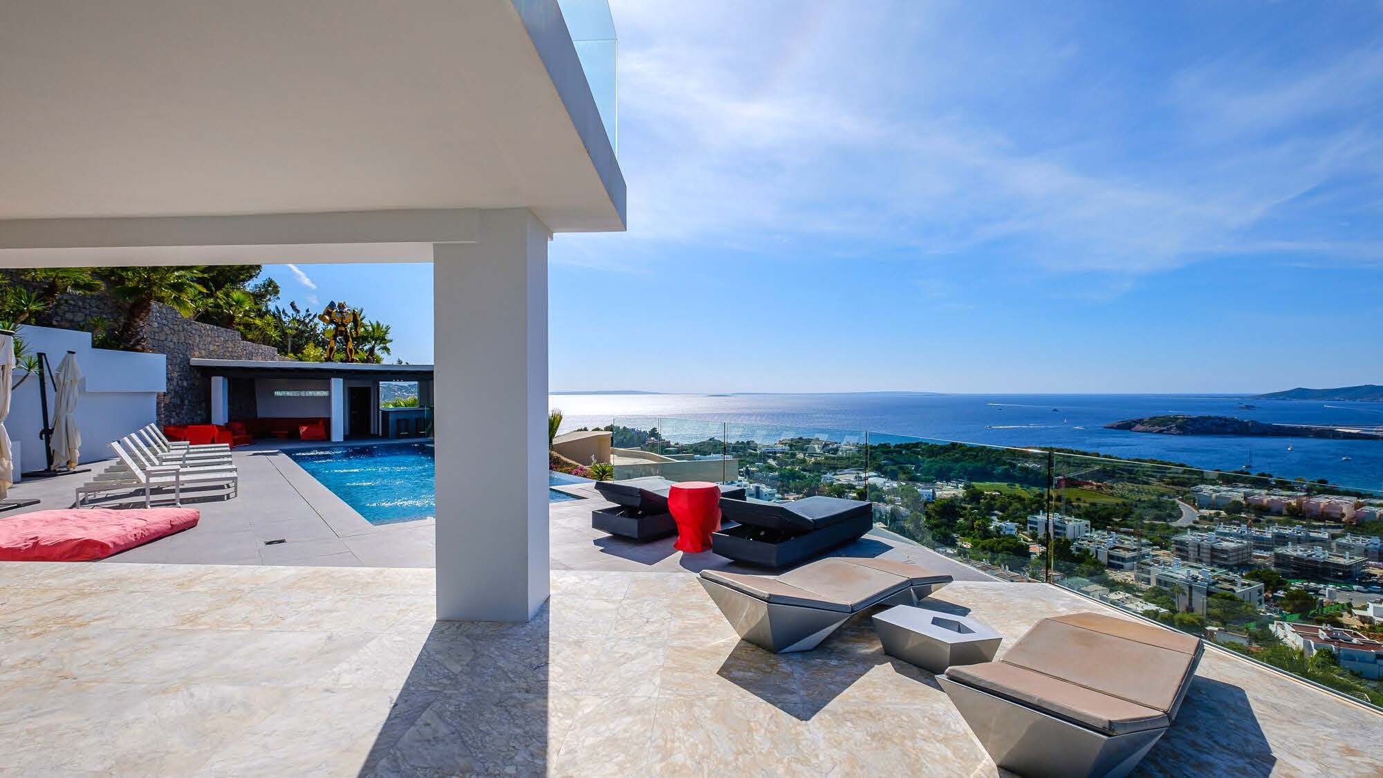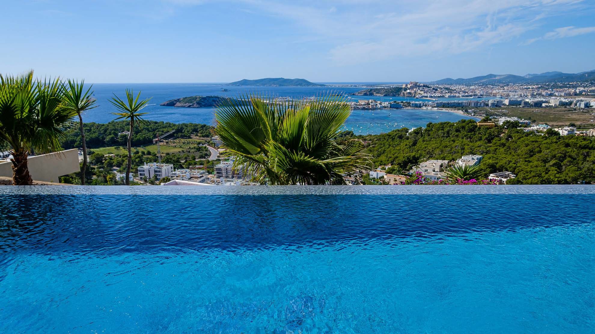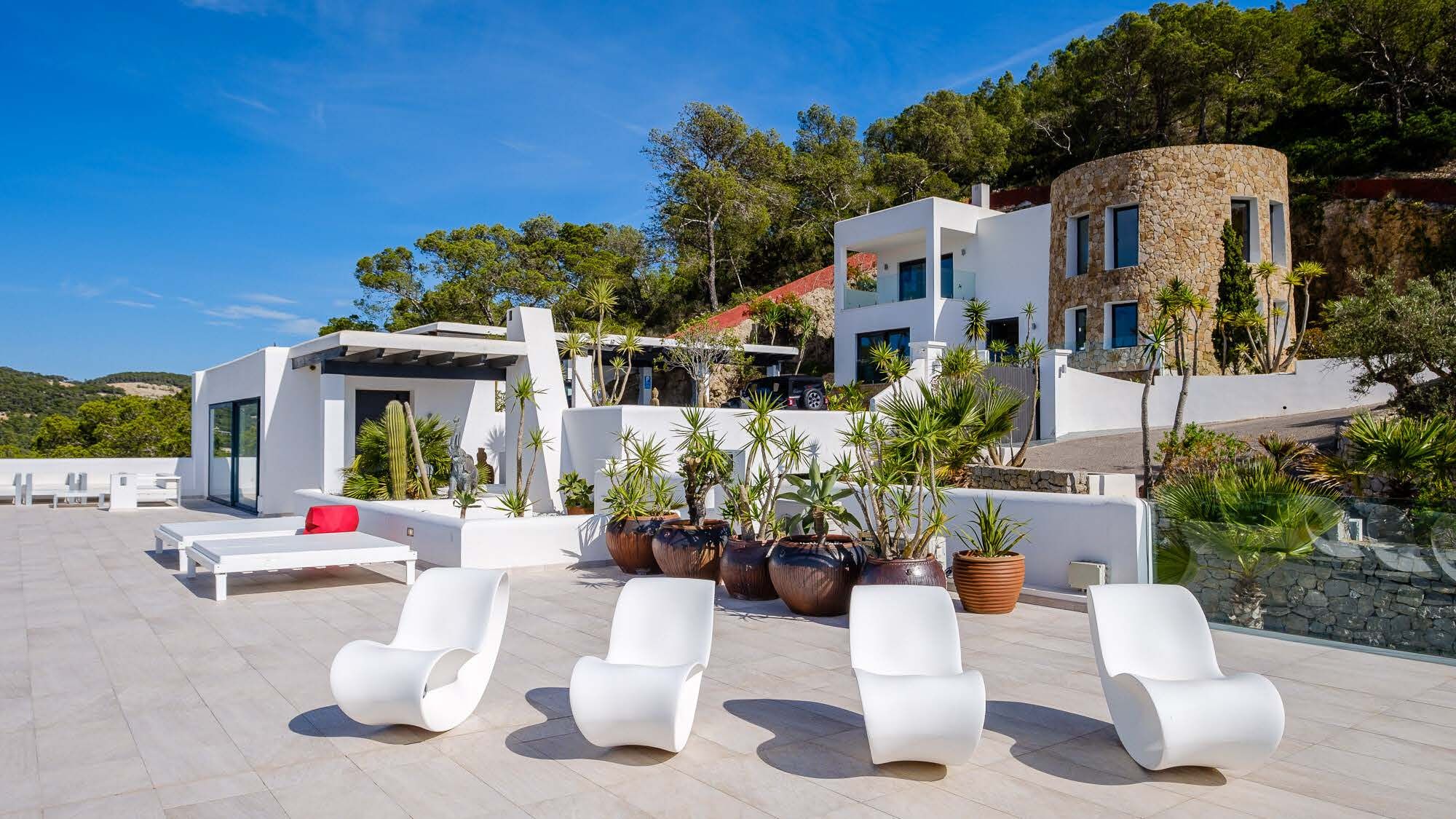 Built into a hill, overlooking Ibiza town and the southern coastline, the split terraced landscaping provides outdoor entertainment opportunity.