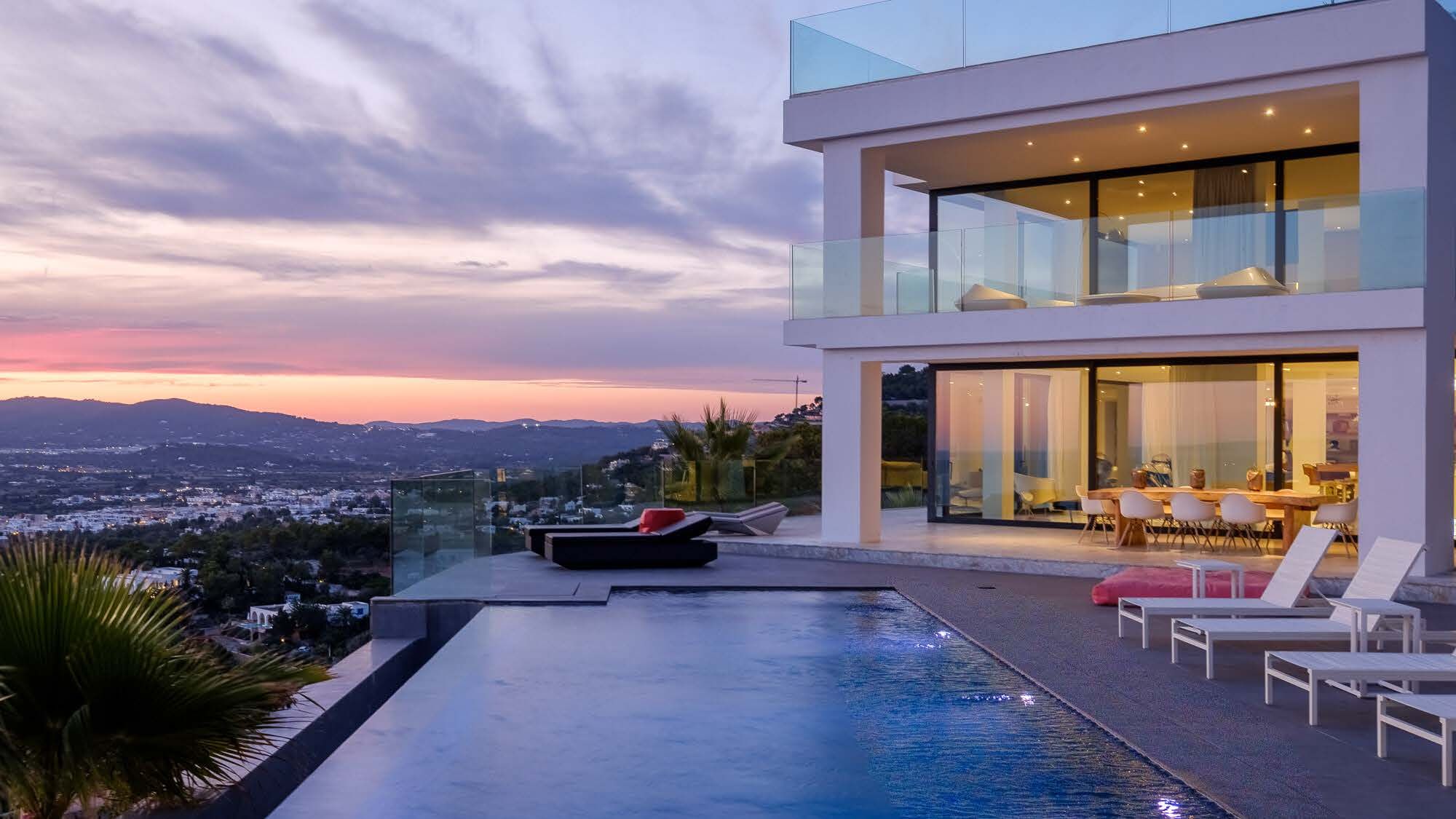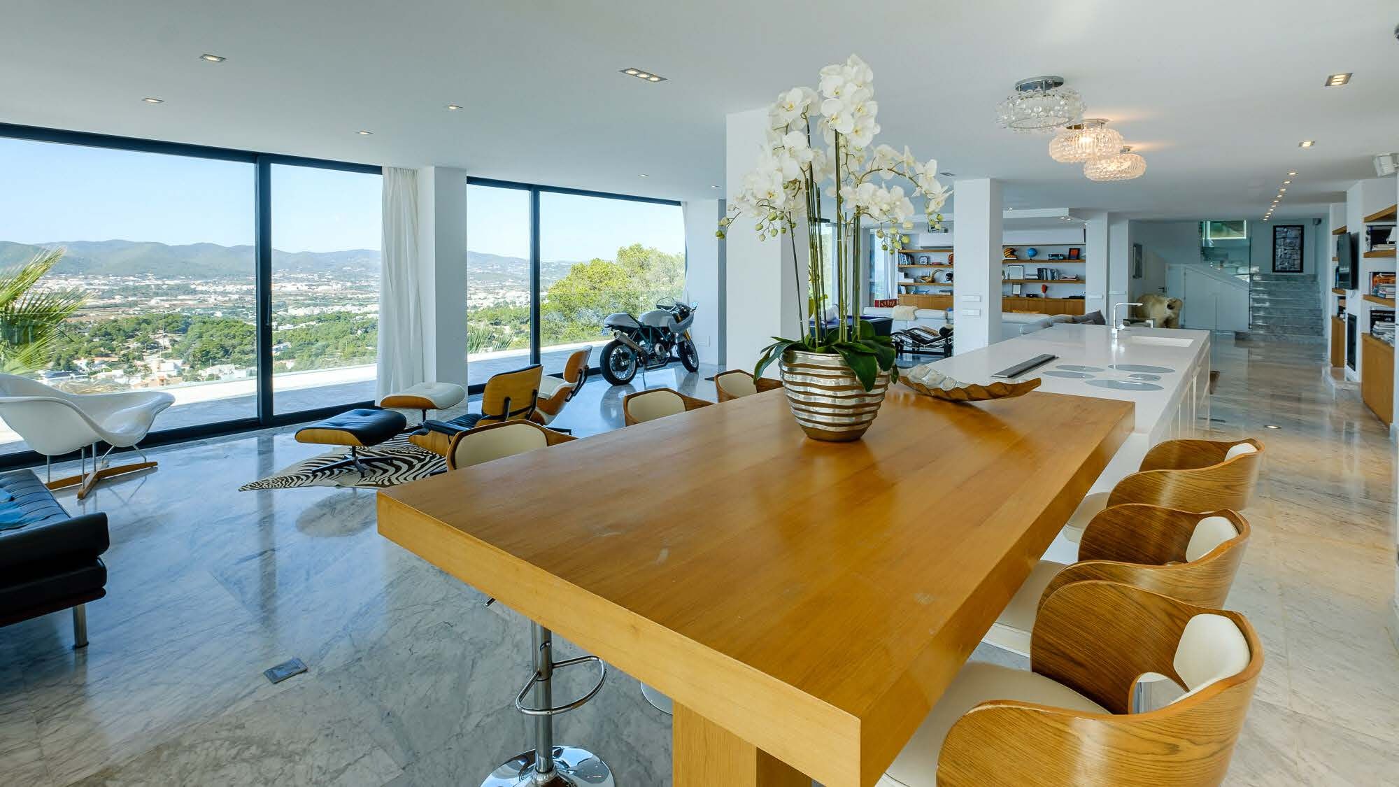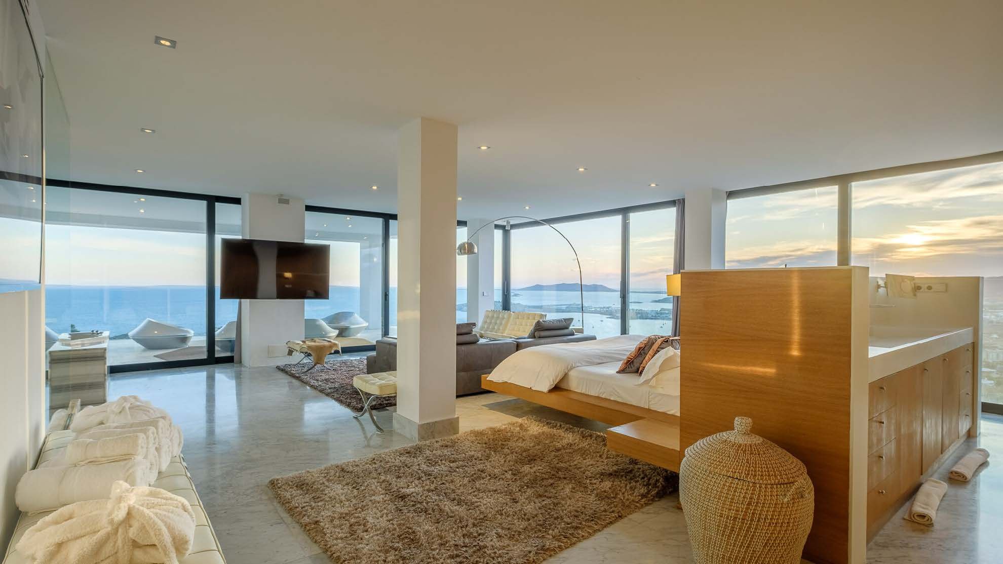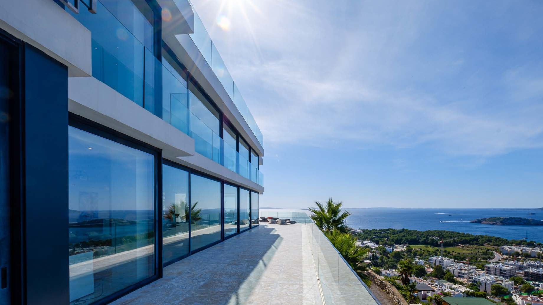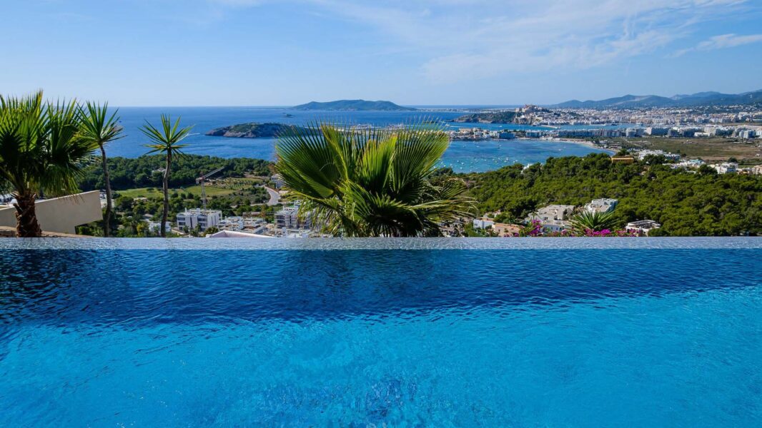 Built into a hill, overlooking Ibiza town and the southern coastline, the split terraced landscaping provides outdoor entertainment opportunity.