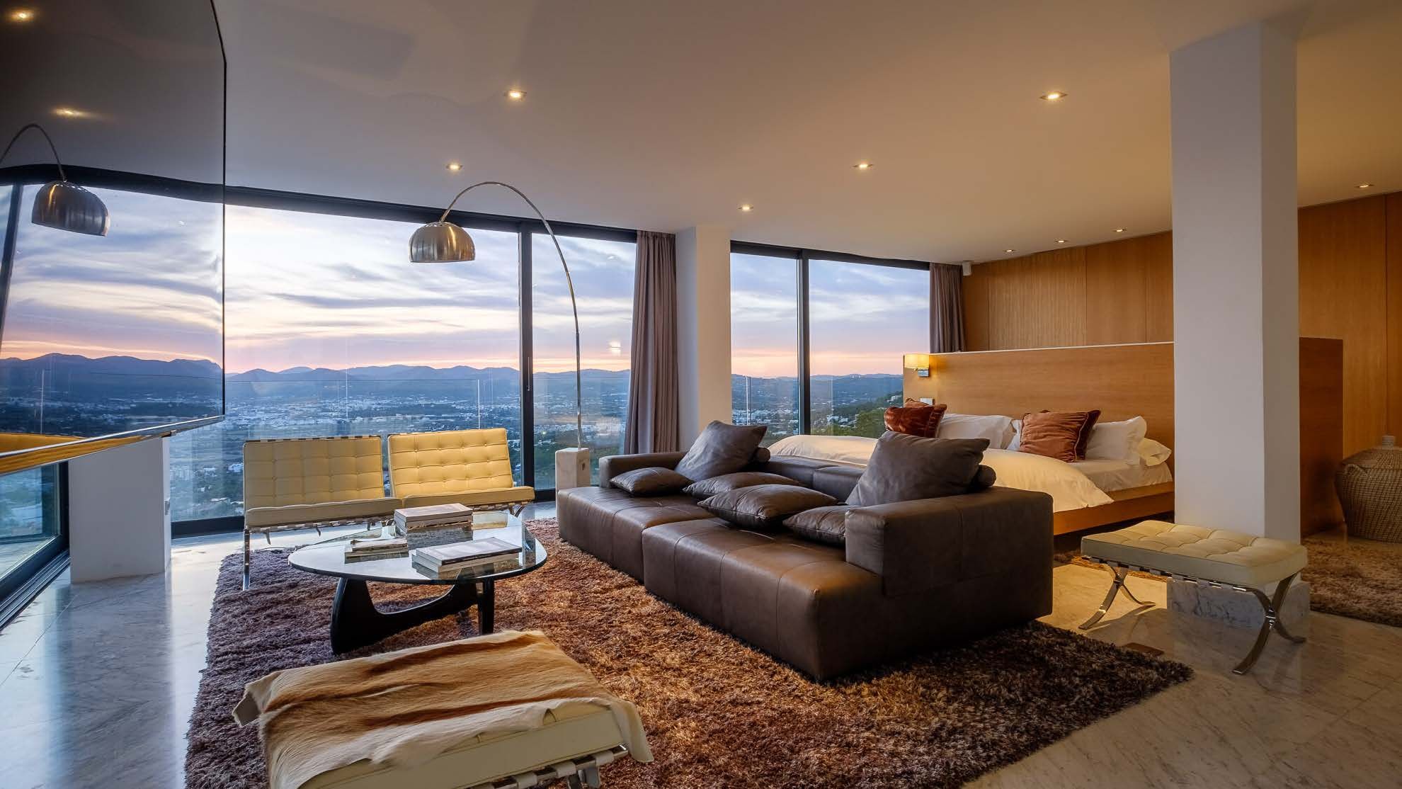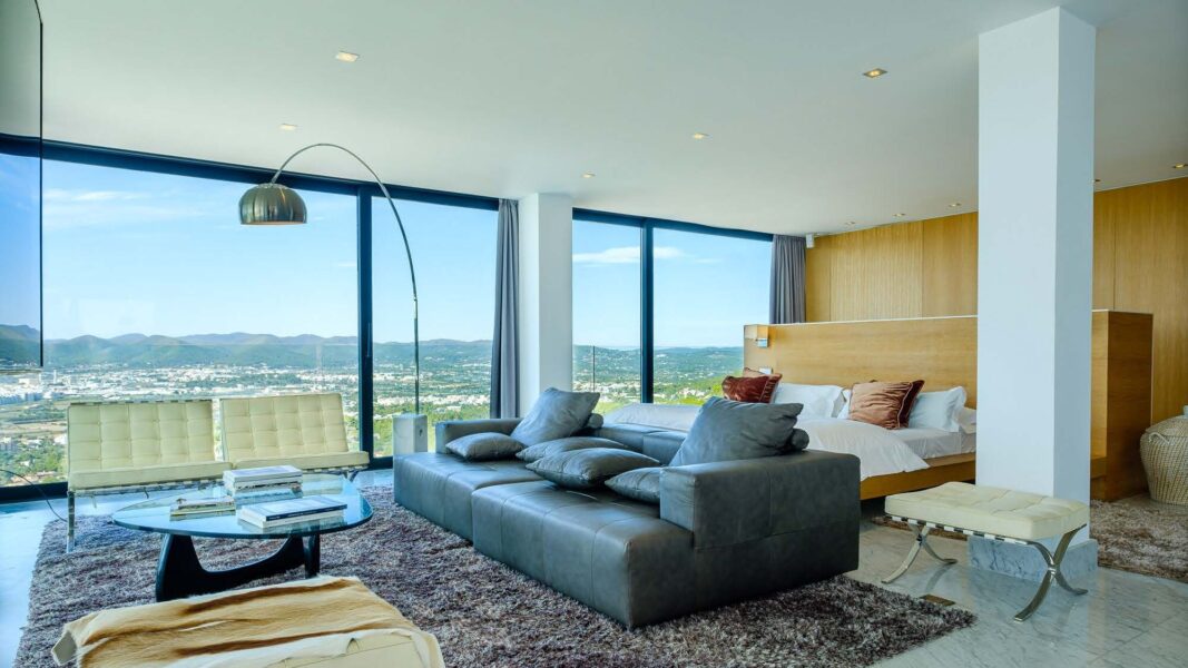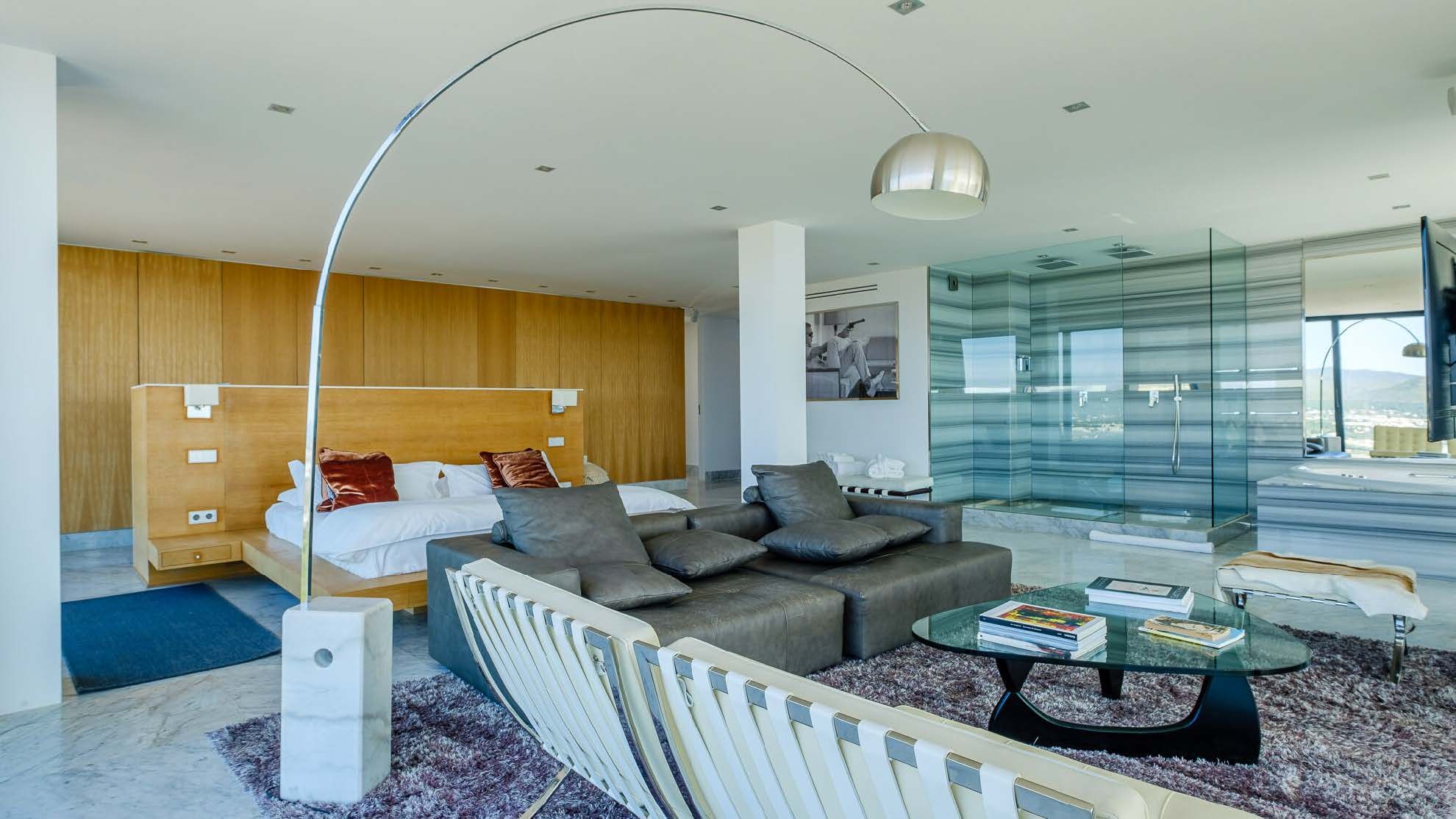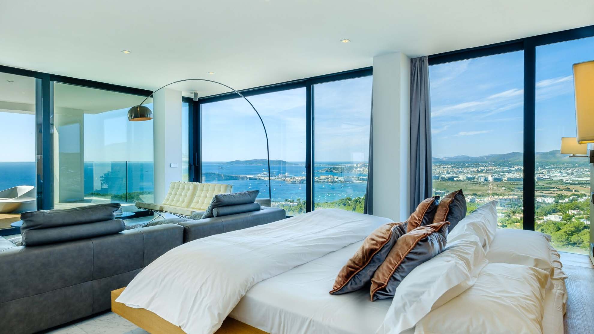 Built into a hill, overlooking Ibiza town and the southern coastline, the split terraced landscaping provides outdoor entertainment opportunity.