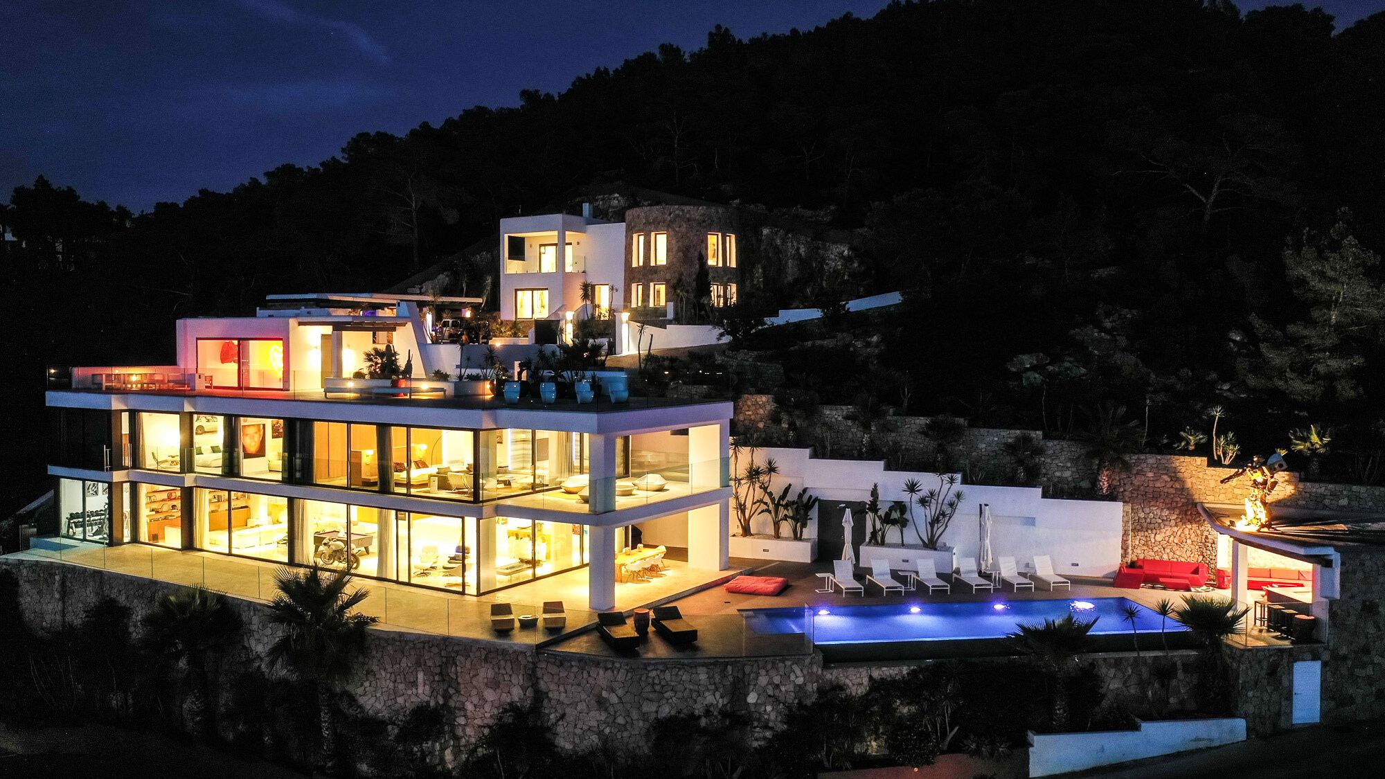 Perfectly positioned for convenience and ultimate privacy in one of Ibiza’s most sought-after locations, this magnificent mansion of 1.100m2 unfurls over split levels to reveal a contemporary home of paired back elegance and filled with modern touches. Completely reformed in 2014 the home in a state of elevated perfection with focal points to far off mountains and a full sea view to the South including Formentera.